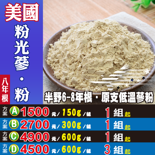 E2【美國▪低溫▪粉光蔘粉】✔半野蔘▪6-8年根 數量